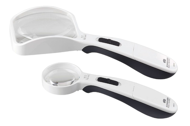 Lupe de mână cu suport pliabil și mâner pliabil. Suport pliabil din metal cu înclinare reglabilă Lentila asferică ușoară. Furnizat cu husă din microfibră.