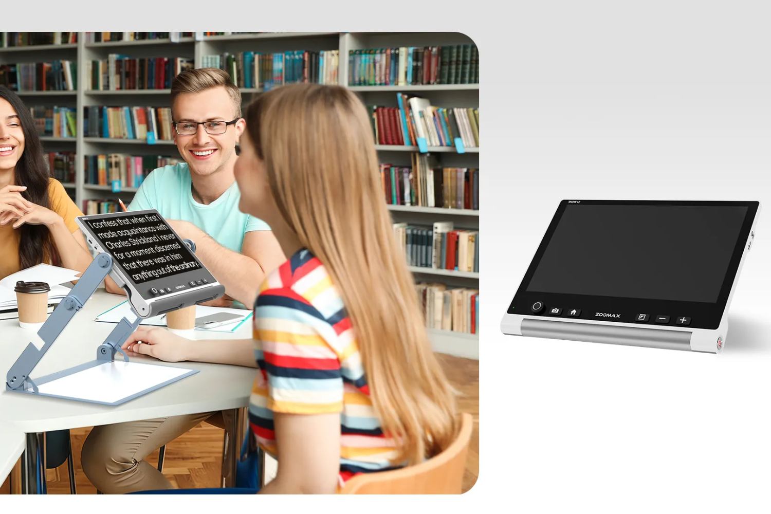 Lupa electronică portabilă Zoomax Snow 12 dispune de un ecran mare de 12 inci, culori vii și moduri de contrast adaptabile, pentru ca utilizatorii cu vedere slabă să poată citi fără efort orice material.